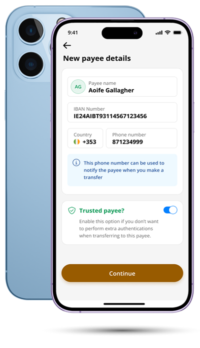 - Add new payees within the app quickly and securely